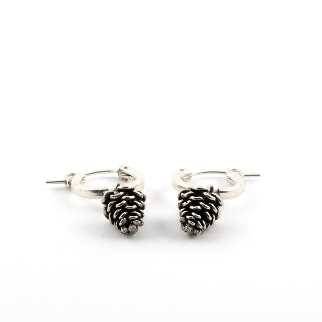 Small Hoop Pine Cone Earrings