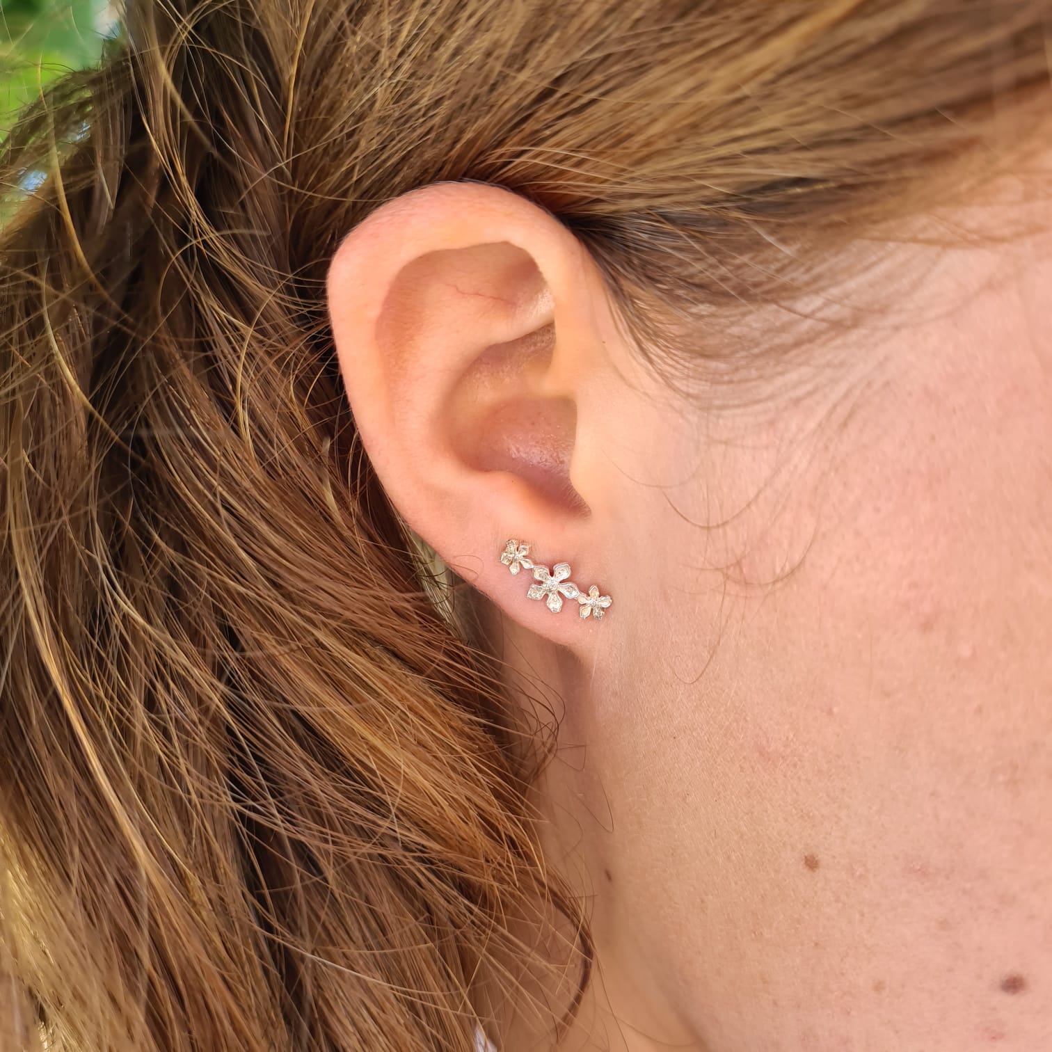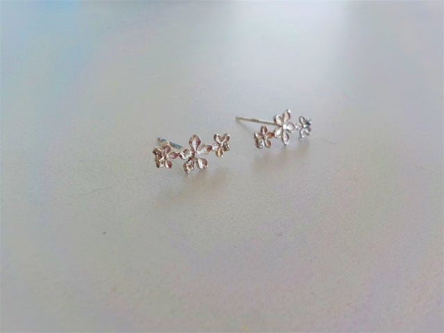 Three exquisite flowers bloom together to give you a springtime joy. Always fresh and in a good mood, this pair of studs is perfect for any occasion.